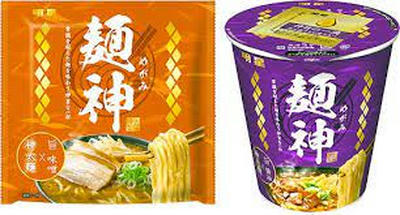 「常識を超えた麺を味わう“神旨”な一杯に」(明星食品)。群雄割拠の即席袋麺と縦型カップ麺市場に、革新的な高付加価値型商品が登場する。明星食品の新ブランド「麺神(めがみ)」がそれだ。 「超極太麺×超濃厚スープ」を特徴とする新ブランドは、「新型コロナ禍の中“プチ贅沢”を味わえる一品」(同社)という位置付け。創立70周年というメモリアルイヤーに、同社の総力を結集した渾身の新商品を投入することで、「明星食品ここにあり」を強力にアピールする。 商品ラインアップは、9月21日から関東甲信越で発売する袋麺「麺神 神太麺×旨 醤油」「同 味噌」(税別180円)と、大型投資した新ラインで製造し、10月5日に全国発売する縦型カップ麺「麺神カップ麺 神太麺×旨 醤油」(税別230円)の3品となる。 袋麺は、簡便性を旨とする即席袋麺の常識を打ち破る、ゆで時間7分という驚きの商品だが、これにより、太麺なのに締まりがあり、歯切れもよく小麦が香る、まるでラーメン店で食べるような迫力のある麺を実現。 一方、「ラーメン店で食べる味を追求し、即席麺の常識を超えた麺と濃厚なスープで味わう、真のお店品質を目指した」というカップ麺は、大型投資により東日本明星埼玉工場(埼玉県比企郡)に整備した縦型カップノンフライ麺最新ラインで製造する第1弾商品。「独自の麺乾燥技術を生かし、これまで実現が難しかった太さ、コシ、歯応えのある麺の製造(特許出願中)を可能にした」という自信作だ。 発売に合わせ、年間3000GRPのTVCM投下を予定するほか、有名ラーメン店主とのコラボWeb企画も実施。話題を喚起していく考え。