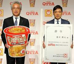 俳優の香川照之さんが「MARUCHAN QTTA戦略担当常務」に就任した。 8日、都内で開催された同商品リニューアル&新CM発表会で沖斉東洋水産専務取締役から辞令を受けた香川常務は、14日から全国でリニューアル発売する「MARUCHAN QTTA」の魅力について熱く語った。 新CMは、香川常務が「まずは麺!え?こんなに?!とびっくりするくらい歯ごたえが増したしっかり麺!」「そしてスープ。こちらもさらに旨味とコクが増した絶妙スープ!」「麺もスープももともとおいしかったが、さらにおいしくなってる!!」「こんなのもう我慢できるわけがない!」など、「MARUCHAN QTTA」について熱弁をふるい、「カモン!」「あなたも、クッタら、わかります!」という掛け声で締めくくるというインパクト抜群の内容。 商品ラインアップは、“王道”と位置付ける「コクしょうゆ味」「シーフード味」と、「過去発売時に再販の要望が高かった」(福田肇東洋水産執行役員加工食品部部長兼低温食品部・マーケティング部担当)という「トマトクリーム味」「サワークリームオニオン味」(各税別193円)を秋冬限定フレーバーとして発売する。 タテ型カップ麺市場はNB、PB含め群雄割拠という状況だが、福田氏は「MARUCHAN QTTA」の差別化ポイントについて「最大の特徴はラードの旨味。ラードを使った油で麺を揚げているので、植物油では出ない、甘さ、コク、香ばしい風味があり、その旨味がスープにしみ出すことで、やみつきになる味わいがある。 今回のリニューアルでは、そのストロングポイントをさらに強化し、コクのある麺に変更。パッケージも調理写真を大きく見せることで、さらに食べたくなるようなパッケージにし、フタの形も改良。開ける際、持ちやすくした」と説明。 新CMを含めたマーケティング施策については、「『すべての若者を応援する』というコンセプトは変えていないが、購入される方は主婦が多い。発売から3年が経過し、ある程度、認知度は向上した。これからは『食べていただきたい』ということで、香川さんのお力も借りながら、若い人に加え、さまざまな世代の方々に幅を広げていきたい。昨年以上の拡販に向け、マーケティングを強化していく」との狙いを語った。