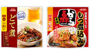 『おうち居酒屋』は、電子レンジ対応・常温ロングライフ惣菜の新シリーズで、第1弾ラインアップは「どて煮」と「もつ煮込み」(各250円、賞味期間180日)の2品となる。