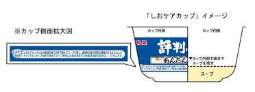 「しおケアカップ」は、食べる人が容器内側下線までスープを残し、摂取する食塩相当量を調整できるようにした。カップ内側下線までスープを残した際に、摂取する食塩相当量の目安がひと目で分かり、手軽に食塩摂取量をコントロールすることができるという仕組みだ。
